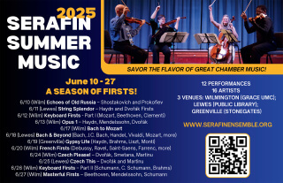 Join us for an extraordinary lineup of strings, keyboard, woodwinds, and voice, led by violinist and artistic director Kate Ransom. Tickets go on sale March 1 at www.serafinensemble.org. Group tickets and packages available—call 302-373-0968 for details!